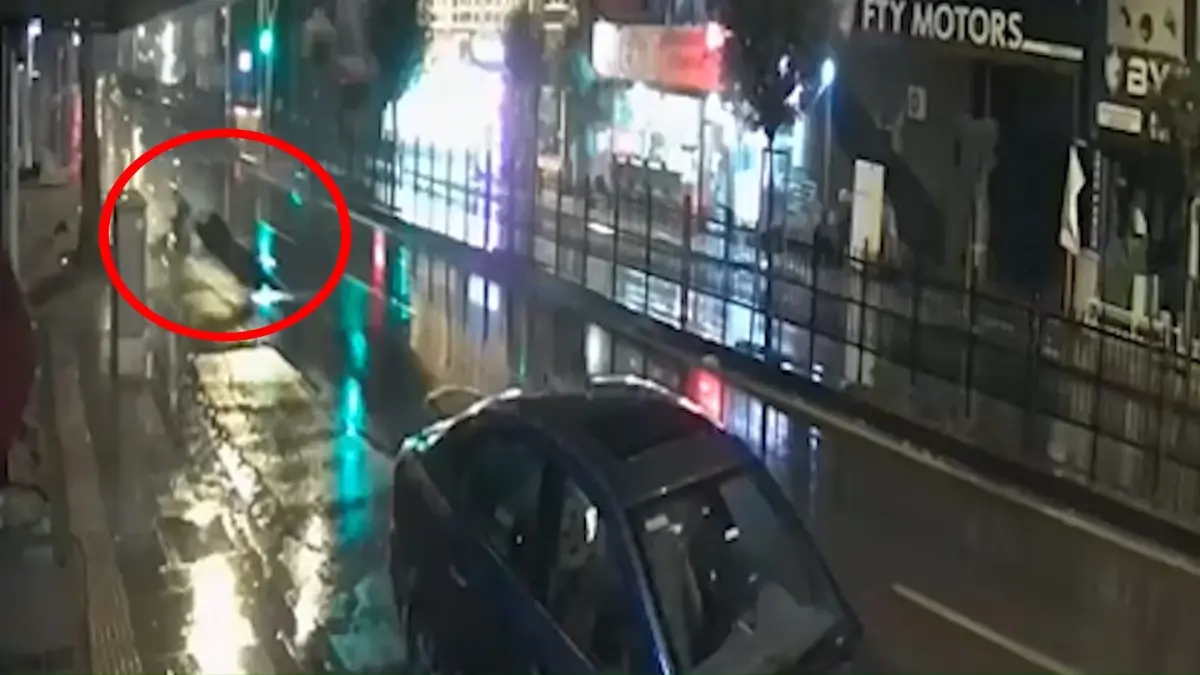 Sakarya'nın Adapazarı ilçesinde, yağmur sonrası kayganlaşan yolda devrilen motosikletin şoförü, metrelerce sürüklendikten sonra park...